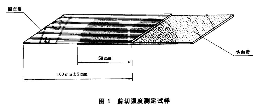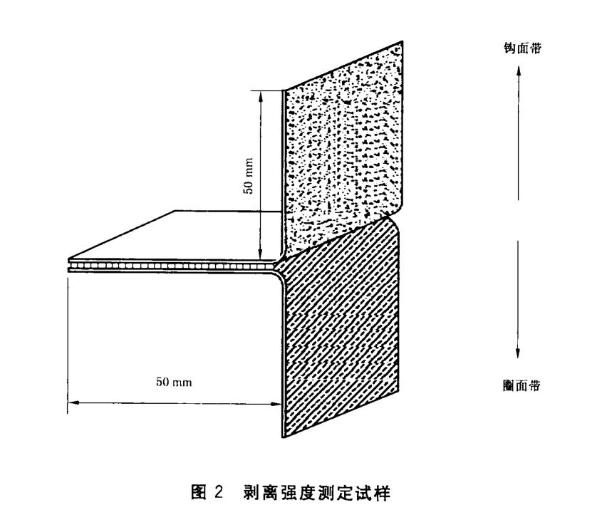 參照剪切強(qiáng)度試樣制備方法,但在粘合時(shí)將鉤面帶和圈面帶的一端對(duì)齊,再輕輕壓合,并使其有效長度為50mm。