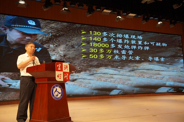 活動(dòng)現(xiàn)場,勞模工匠們用質(zhì)樸的語言,講述著各自崗位上的堅(jiān)守與奉獻(xiàn)。張保國多年來奮戰(zhàn)在排爆一線,用血肉之軀守護(hù)人民群眾生命財(cái)產(chǎn)安全,他的英勇事跡讓師生們深刻感受到了人民警察的責(zé)任與擔(dān)當(dāng);董丹在平凡的公交駕駛崗位上,以熱情服務(wù)和安全駕駛贏得乘客贊譽(yù),展現(xiàn)了新時(shí)代勞動(dòng)者精益求精的職業(yè)素養(yǎng);辛沙沙以溫柔和專業(yè)為逝者送別,詮釋了對(duì)生命的尊重與敬畏;王德萍和張?zhí)N祿兩位教師,扎根教育事業(yè),用愛與智慧培育祖國花朵,彰顯了人民教師的高尚情懷;劉小源和姚鵬在公安崗位上恪盡職守,為維護(hù)社會(huì)穩(wěn)定貢獻(xiàn)力量,他們的事跡激勵(lì)著在場每一個(gè)人。