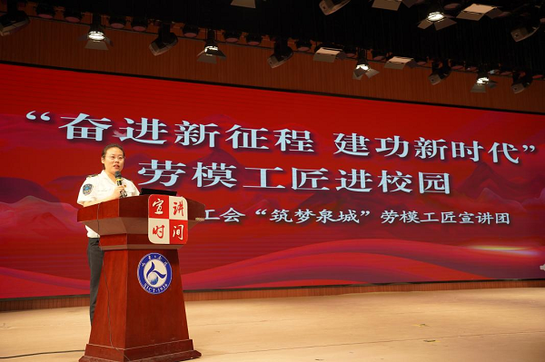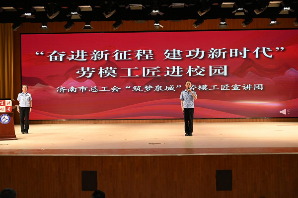 本次活動(dòng)邀請(qǐng)了濟(jì)南市總工會(huì)“筑夢(mèng)泉城”勞模工匠事跡宣講團(tuán)的7位勞模代表擔(dān)任主題宣講者,學(xué)校新入職教師、2023級(jí)部分學(xué)生近900人參加了此次宣講活動(dòng)。