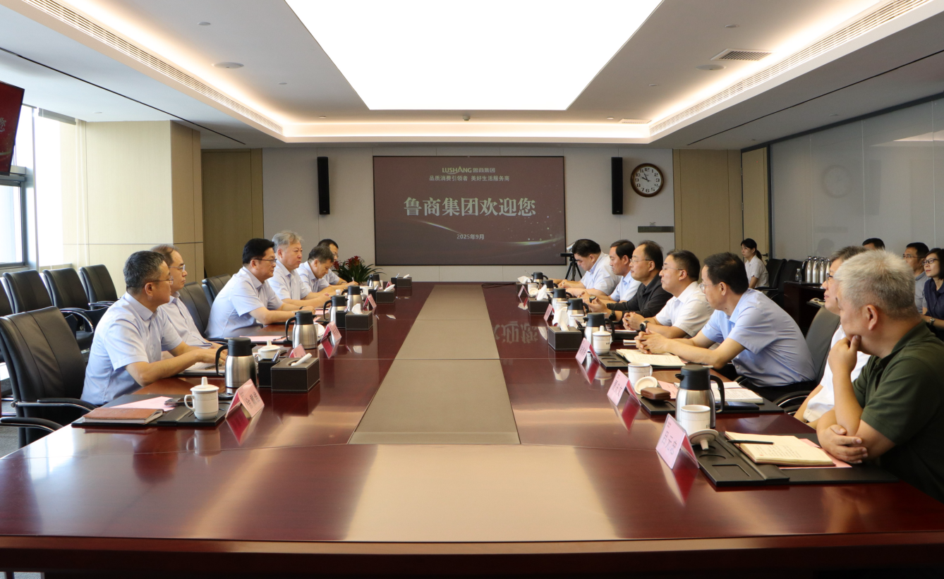 9月4日上午,華魯集團黨委書記、董事長樊軍一行到訪魯商集團,集團黨委書記、董事長王緒超熱情接待并舉行座談。華魯集團黨委副書記、董事、總經理王濤,黨委副書記、董事畢玉國,魯商集團黨委副書記、董事、總經理朱華建,黨委副書記、董事張洪東,黨委常委、紀委書記、省監委駐集團監察專員陸清梓,黨委常委、副總經理劉巖,黨委常委、董事、副總經理、工會主席賈慶文參加座談。