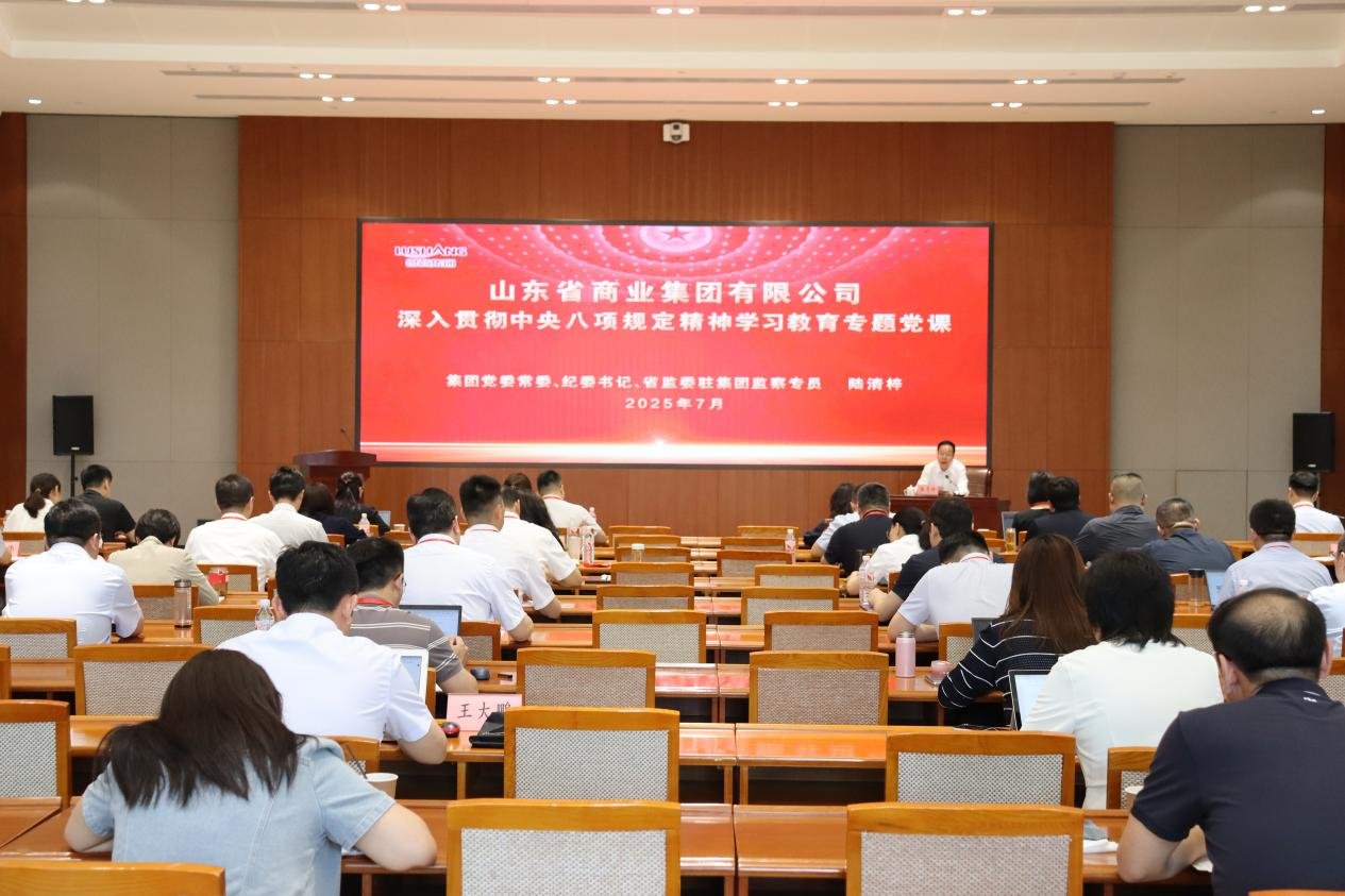 為深入學習貫徹習近平總書記關于加強黨的作風建設的重要論述,推動深入貫徹中央八項規定精神學習教育走深走實。7月9日,魯商集團黨委常委、紀委書記、省監委駐集團監察專員陸清梓以“知敬畏、守底線、強作風、行致遠,為全面打造綜合競爭力強的現代商業服務領軍企業貢獻中堅力量”為題講授專題黨課。