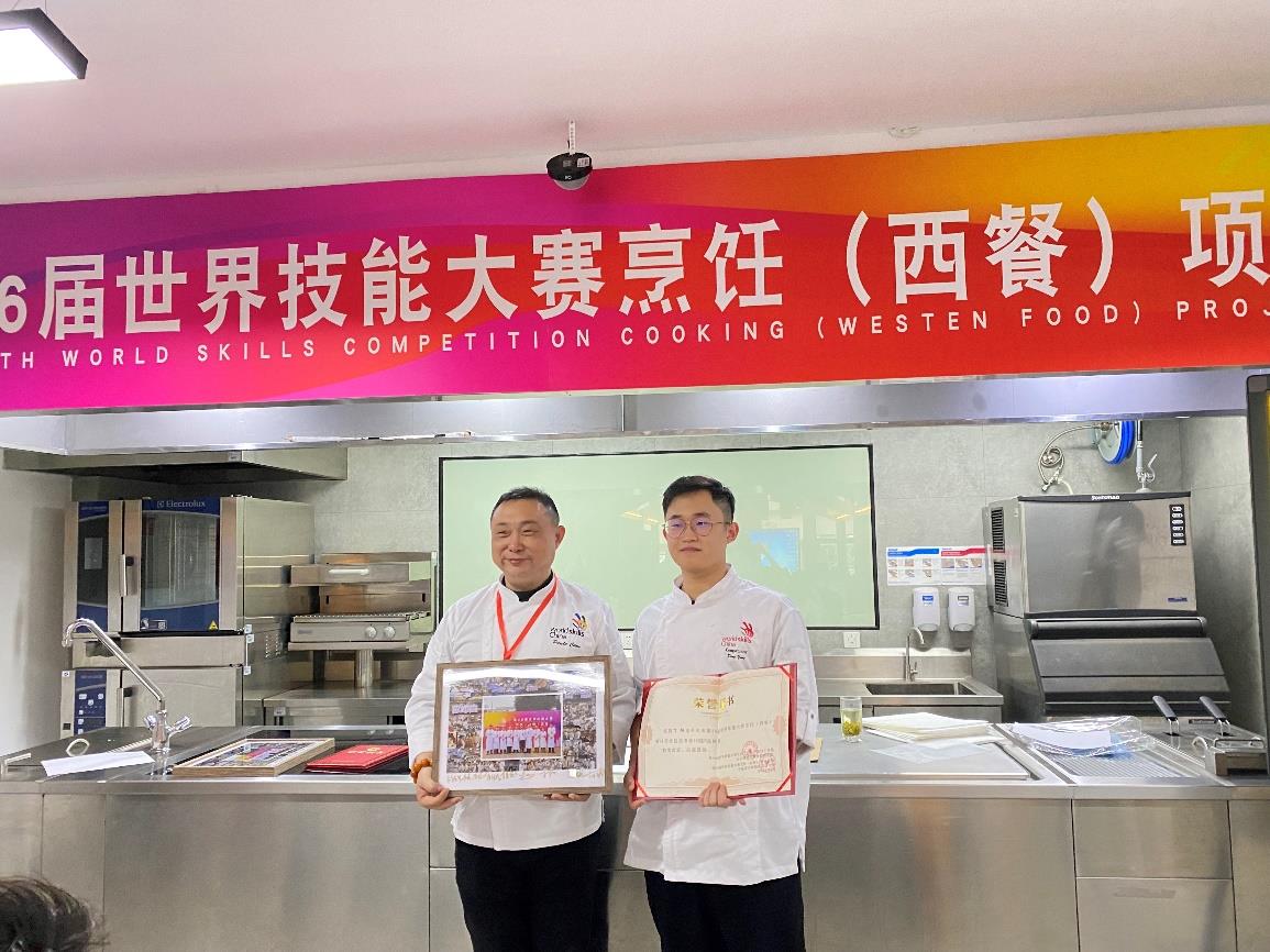 2023年6月7日,基地承辦第47屆世界技能大賽烹飪(西餐)項目山東省選拔賽暨第一屆山東省職業技能大賽,西餐學院選手林坤斬獲桂冠、趙子文榮獲第二名。